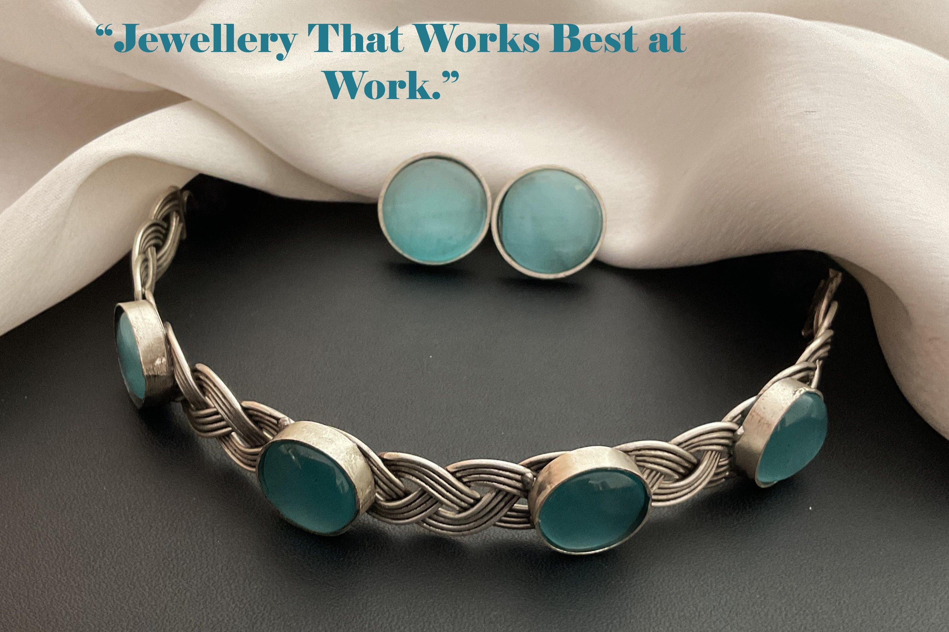 Zoraida silver plated hand carved brass neck hasuli necklace with earrings