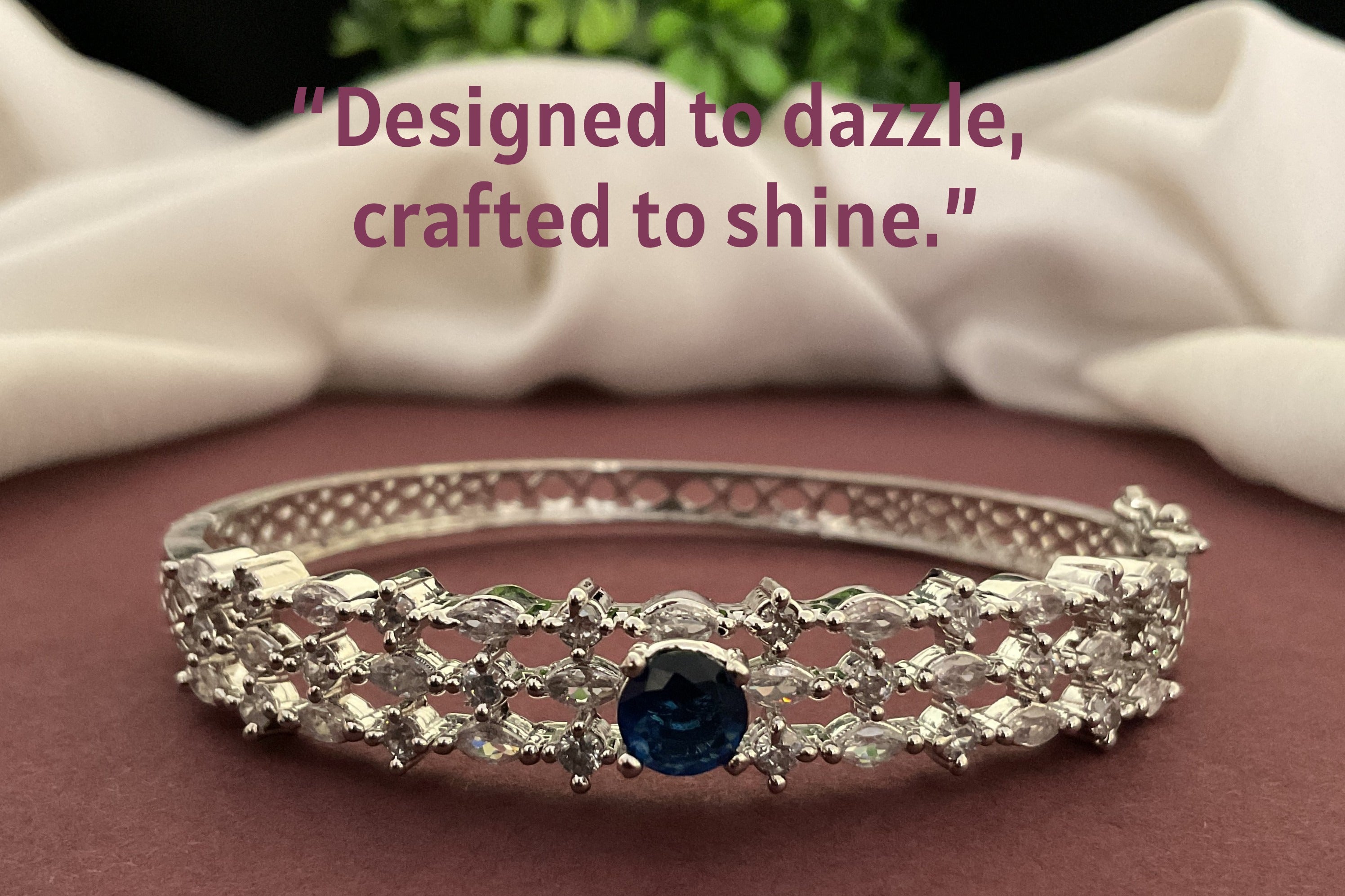 Mohana gold plated paachi kundan ghungroo turquoise blue stone hand kada