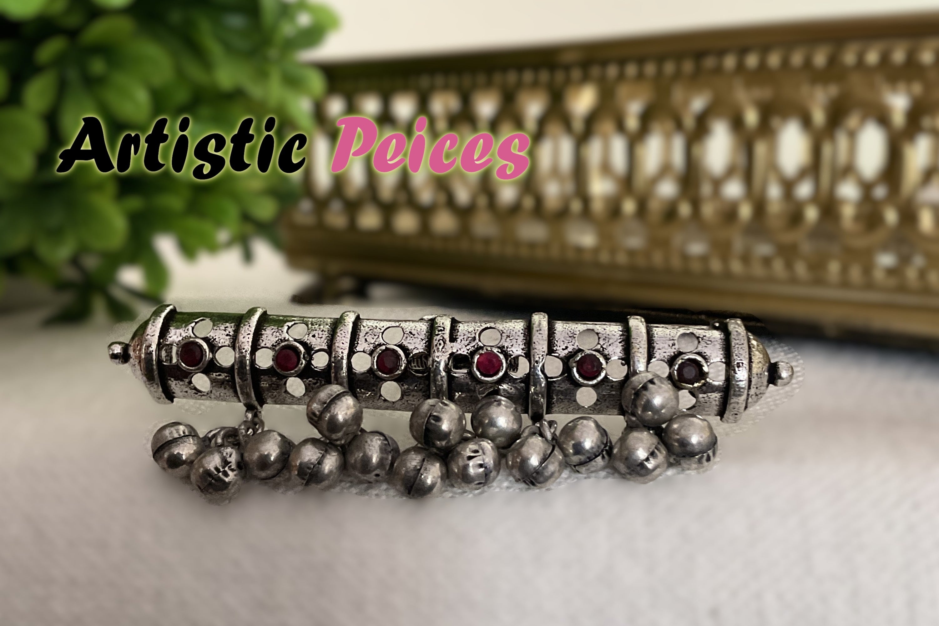 Mohana gold plated paachi kundan ghungroo red stone hand kada