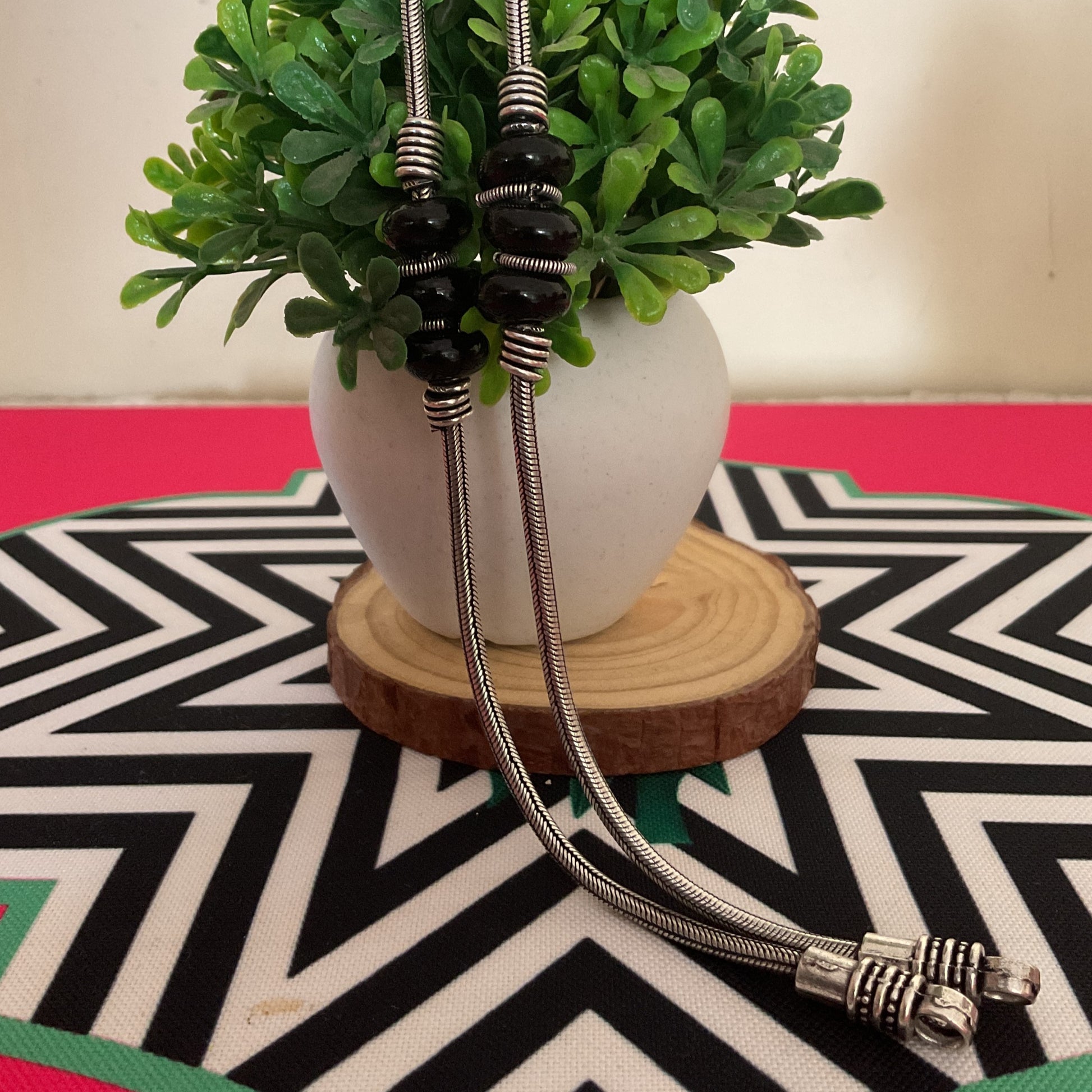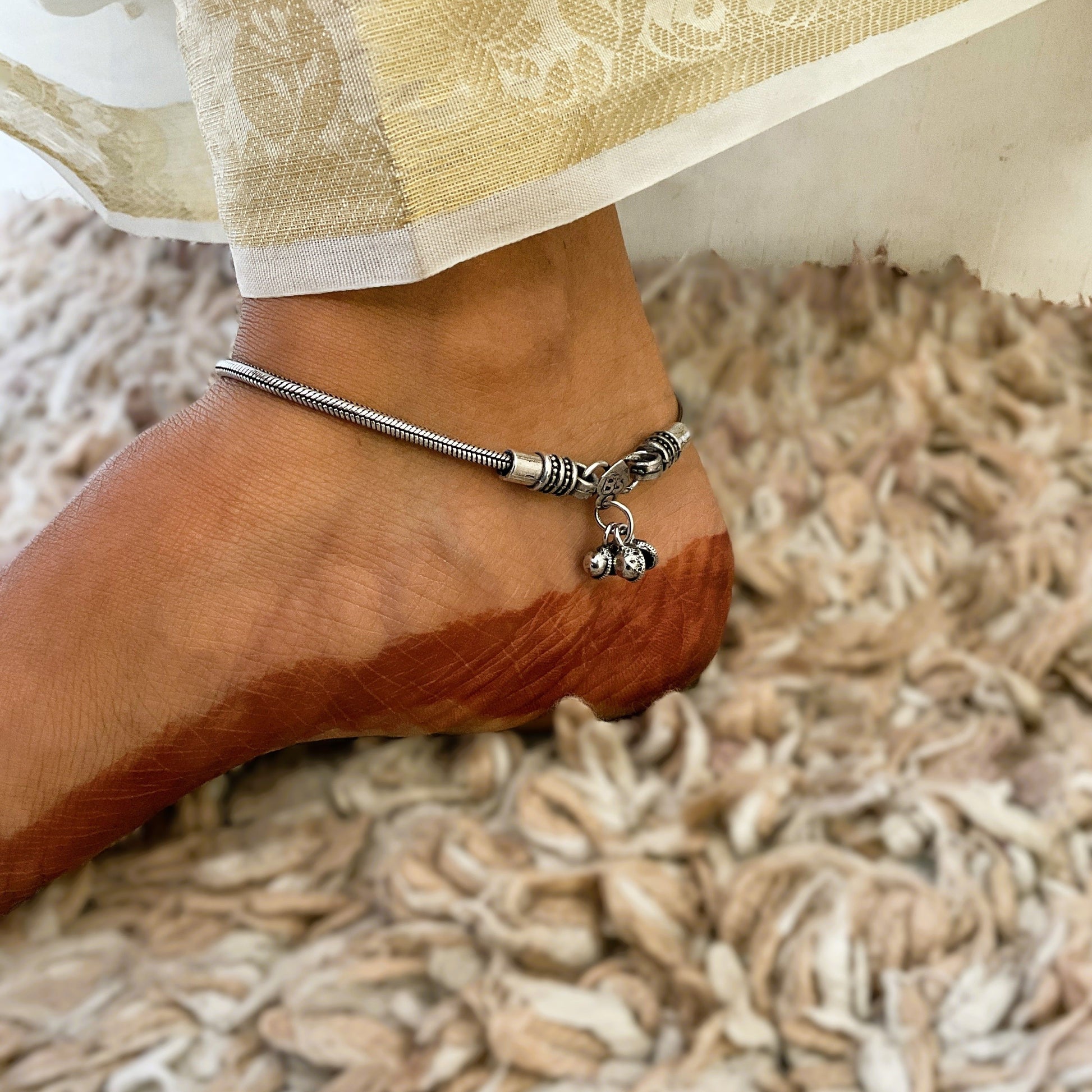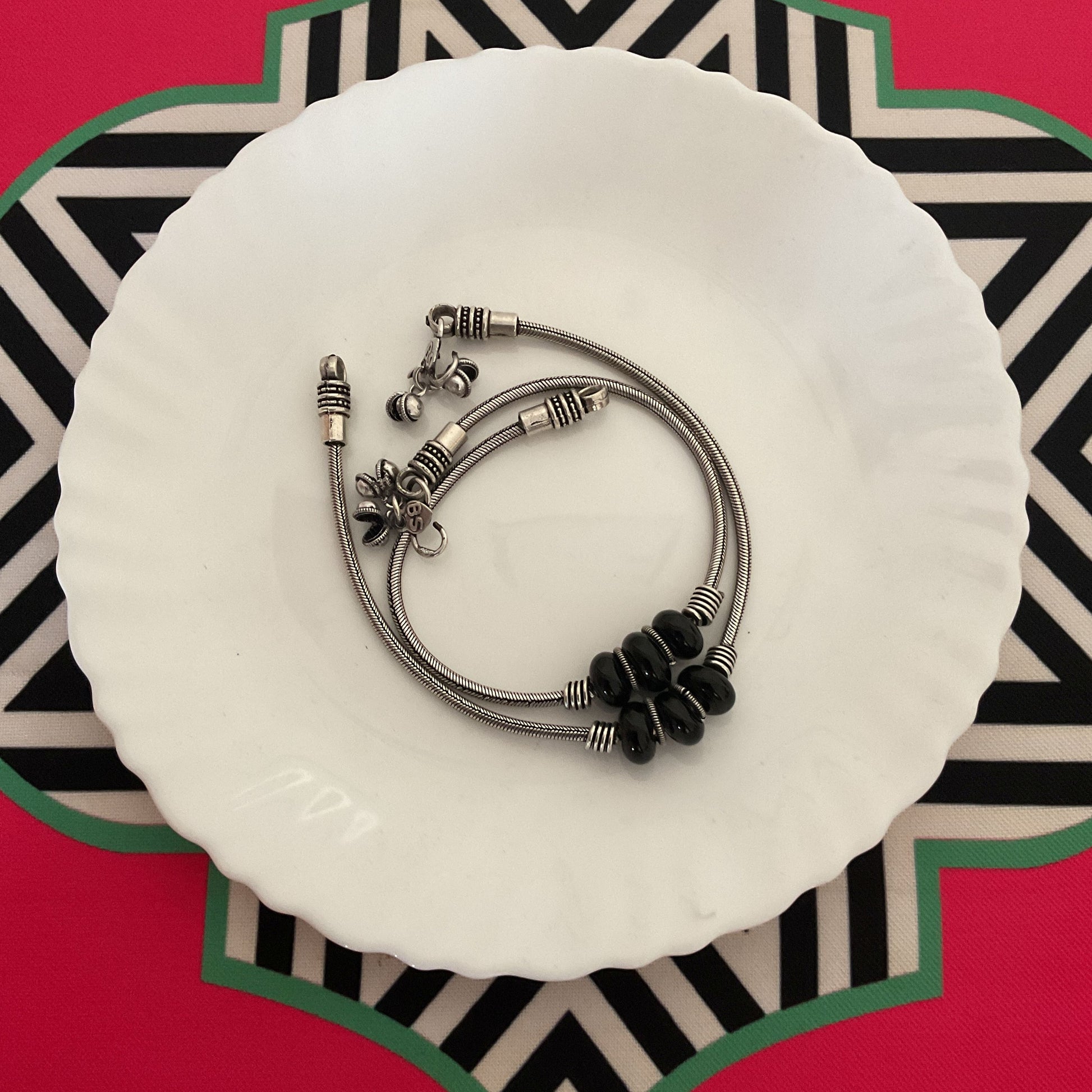 Amrut black stone silver pair of anklets
