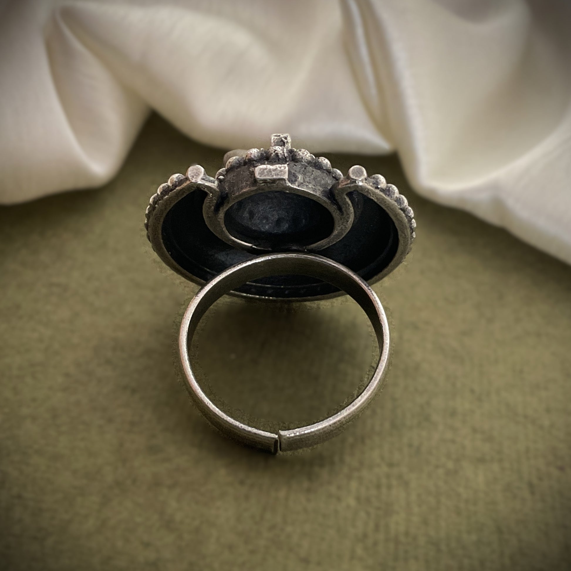 Chandra silver plated ghungroo finger ring