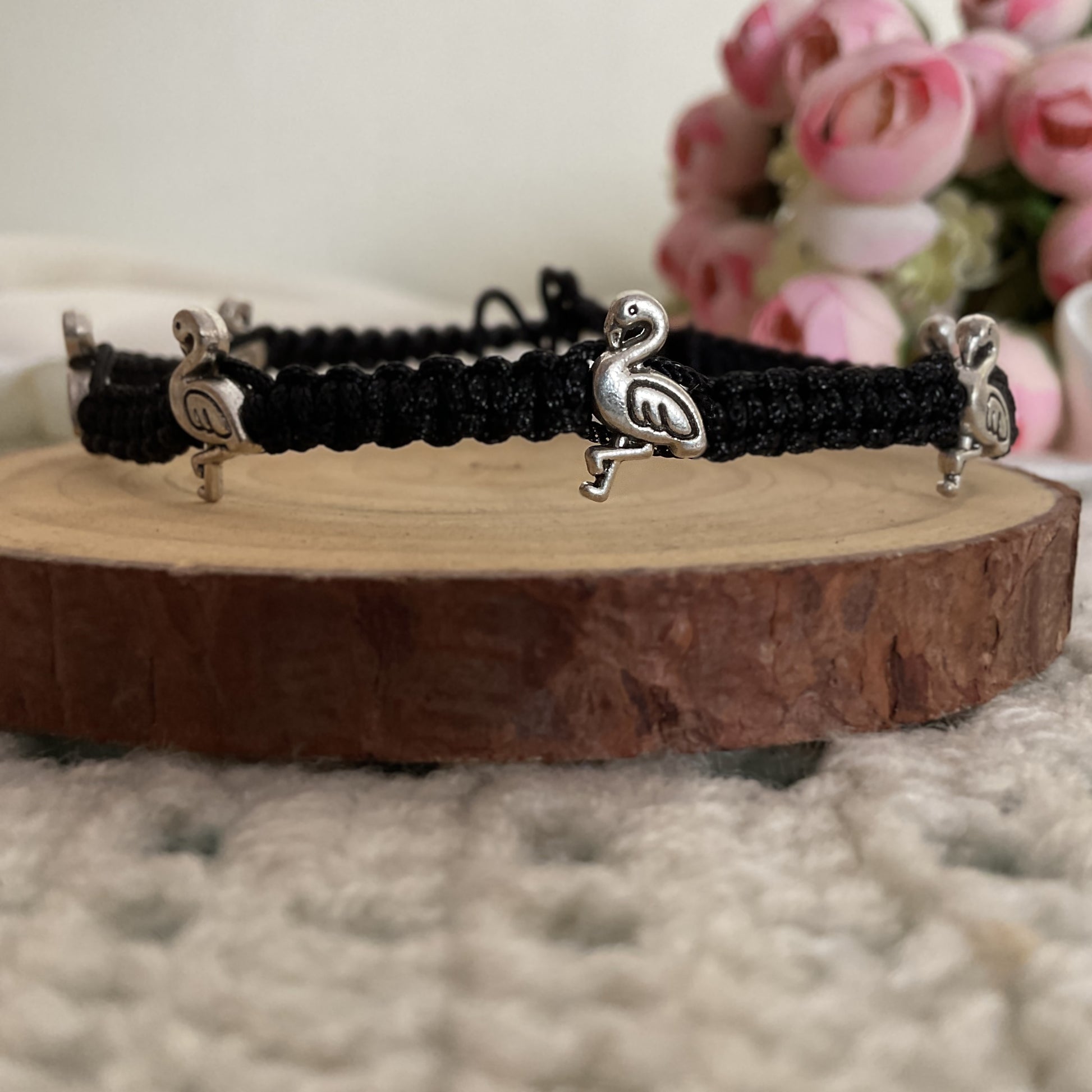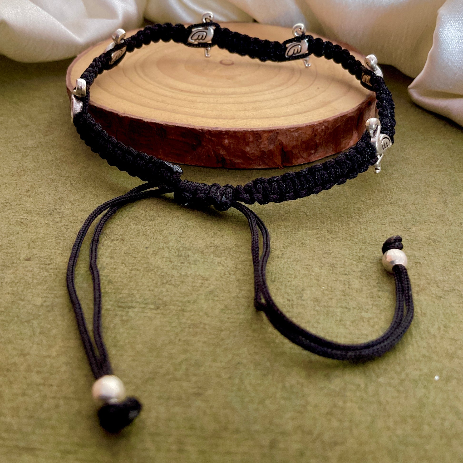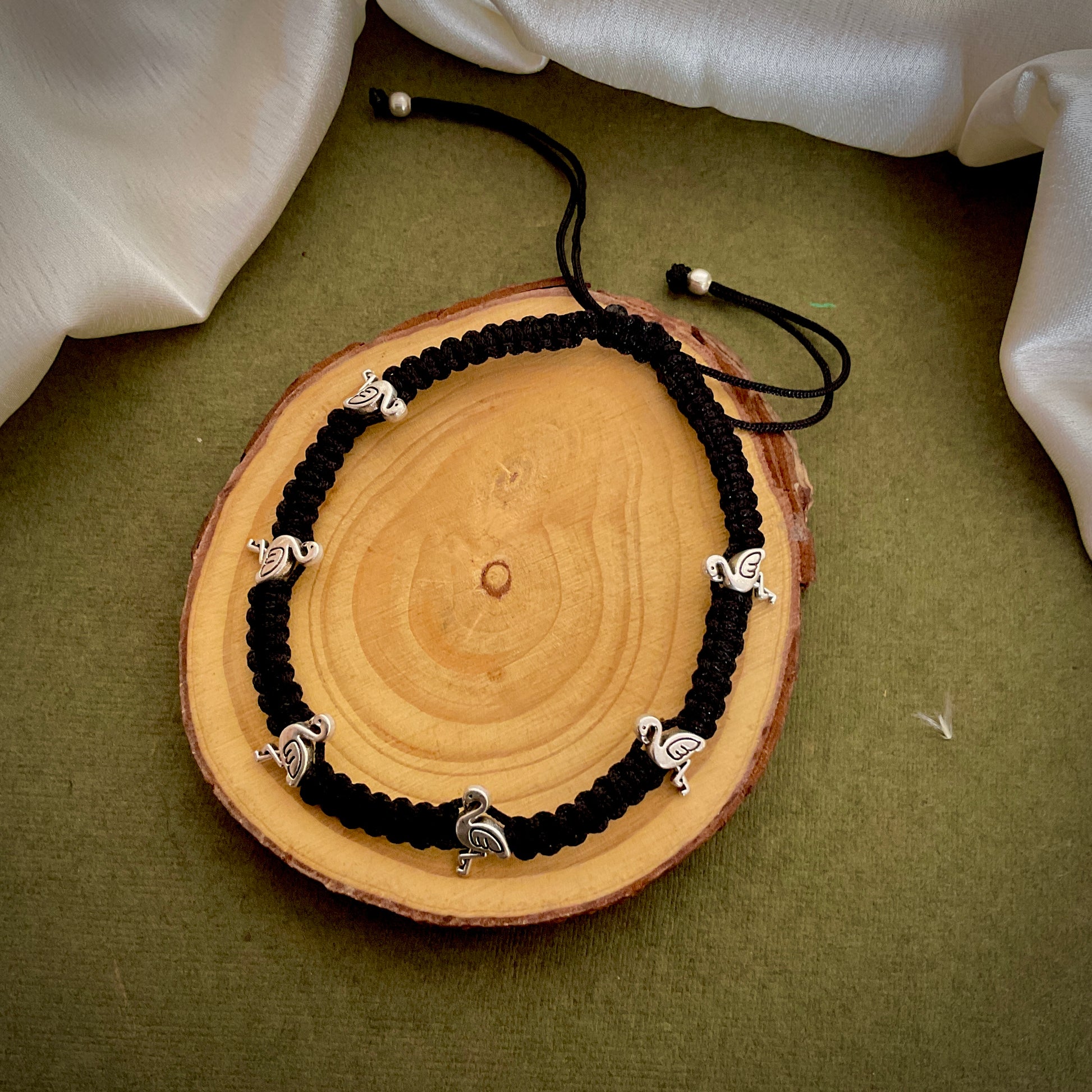 Flamingo silver plated macrame adjustable anklet
