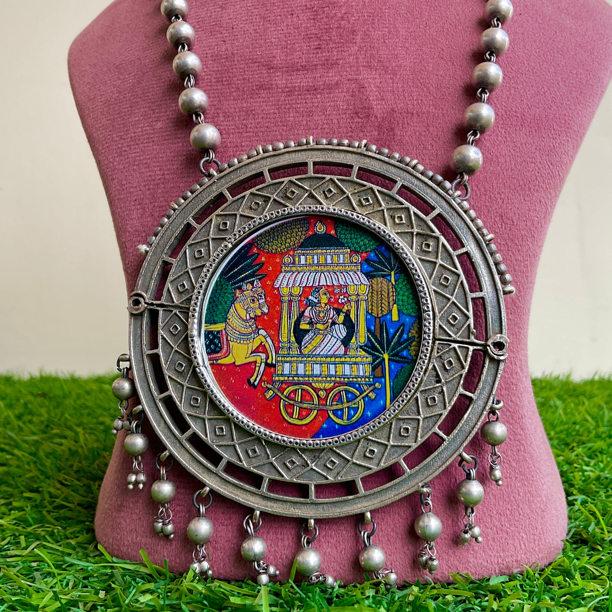Mehrunisa doli painted silver plated ball chain necklace set for women