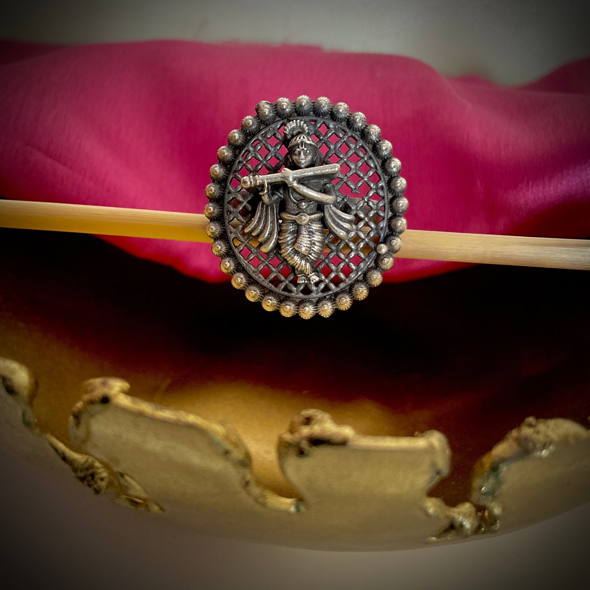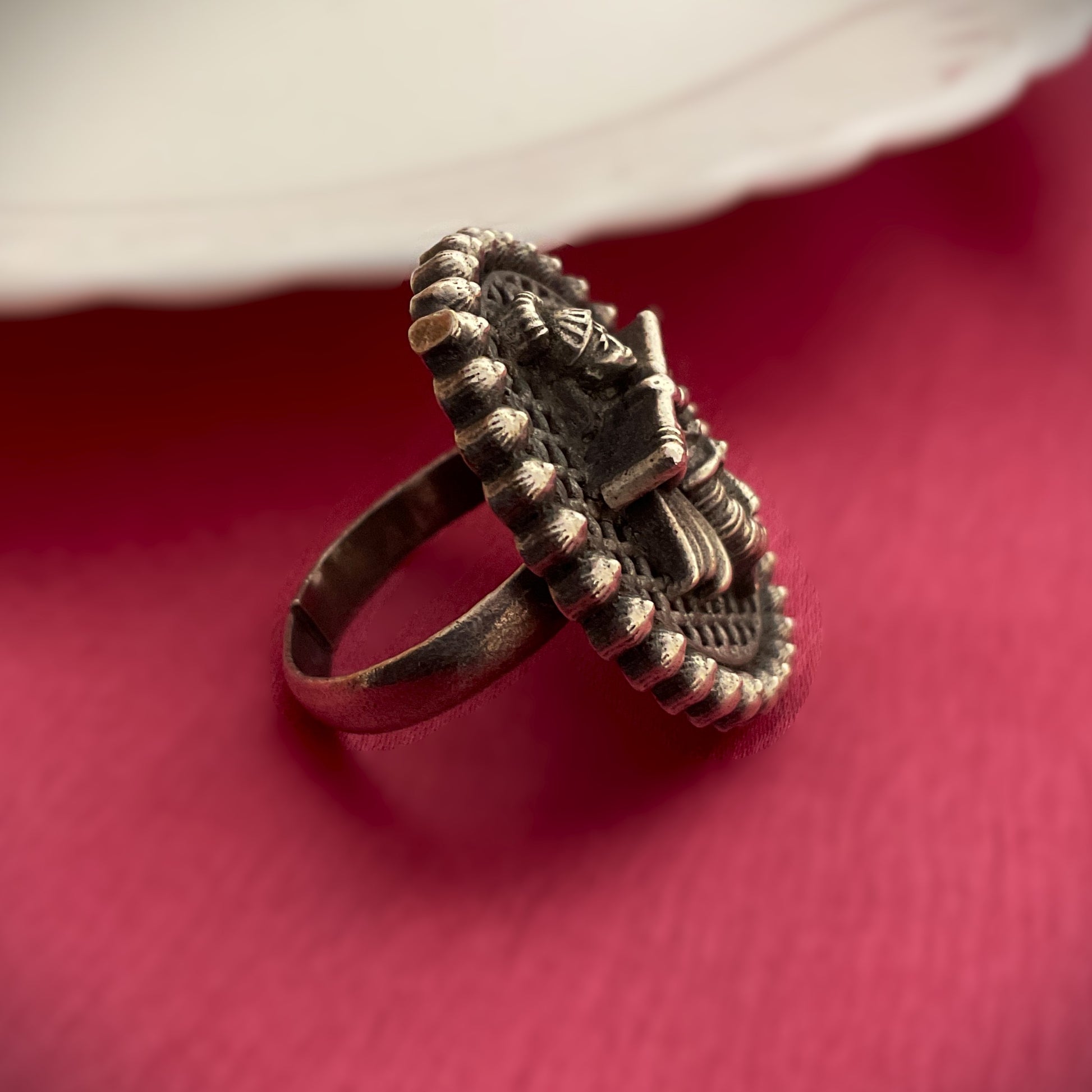 Upasana krisna jali oval silver plated finger ring for women