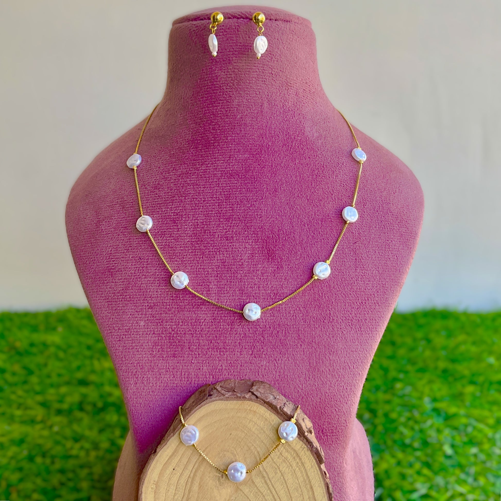 Yati baroque pearl gold plated necklace bracelet and earring set