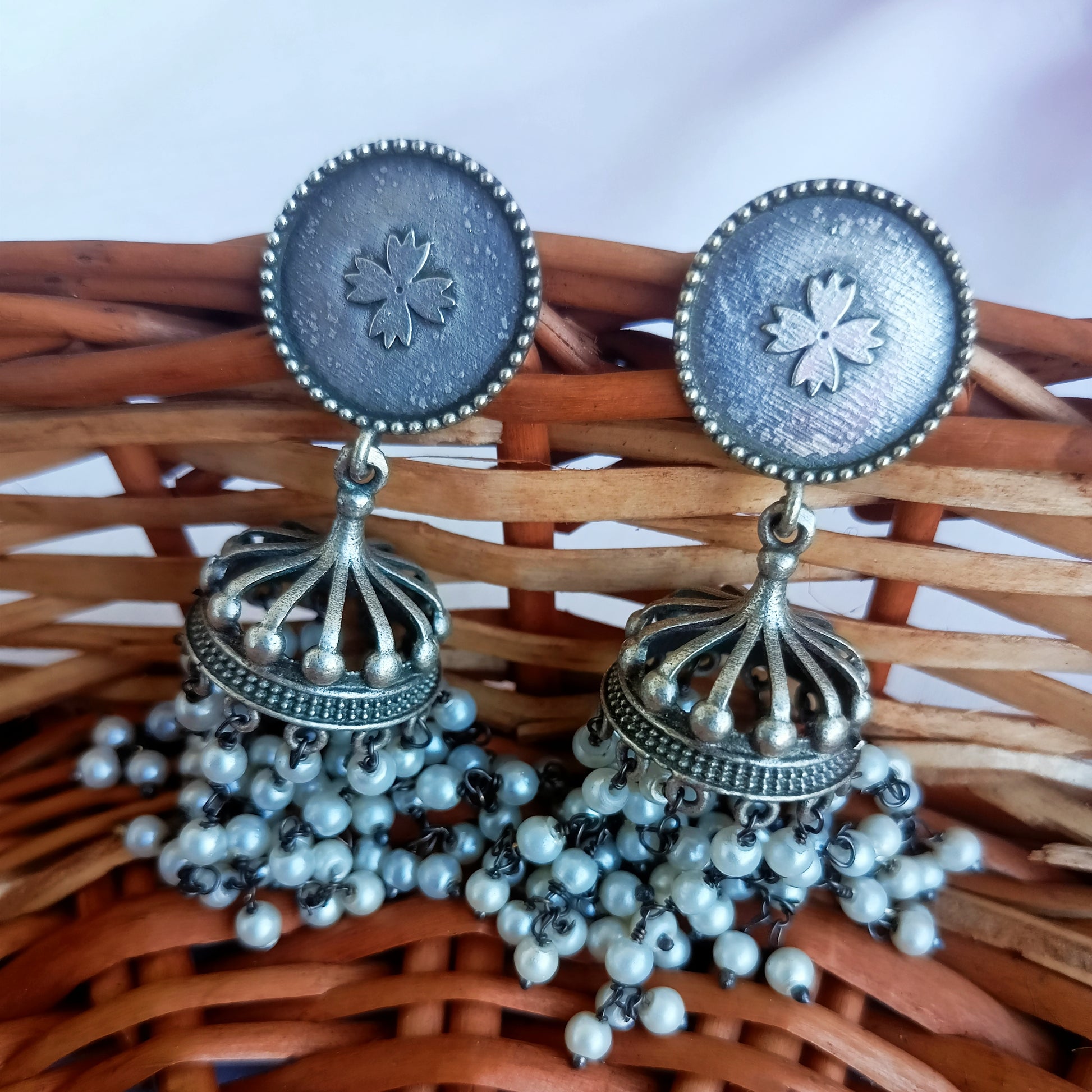 Zaara silver plated pearl jhumkis earrings